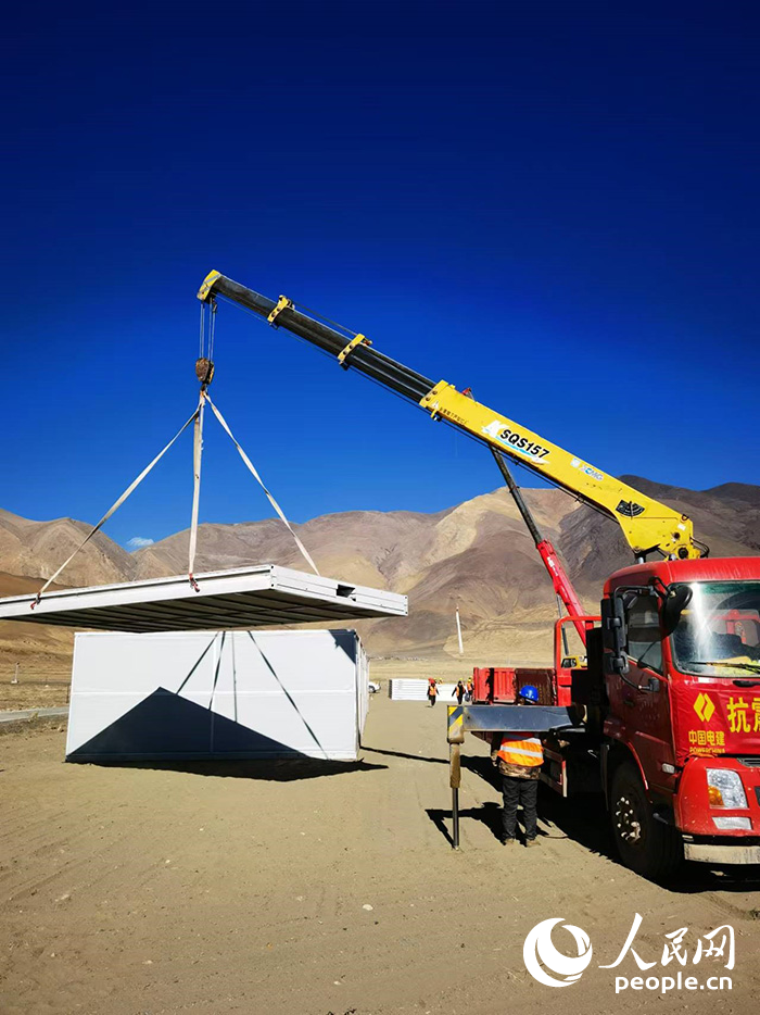徐工隨車吊在日喀則市定日縣長(zhǎng)所鄉(xiāng)森嘎村安置點(diǎn)正在吊裝板房