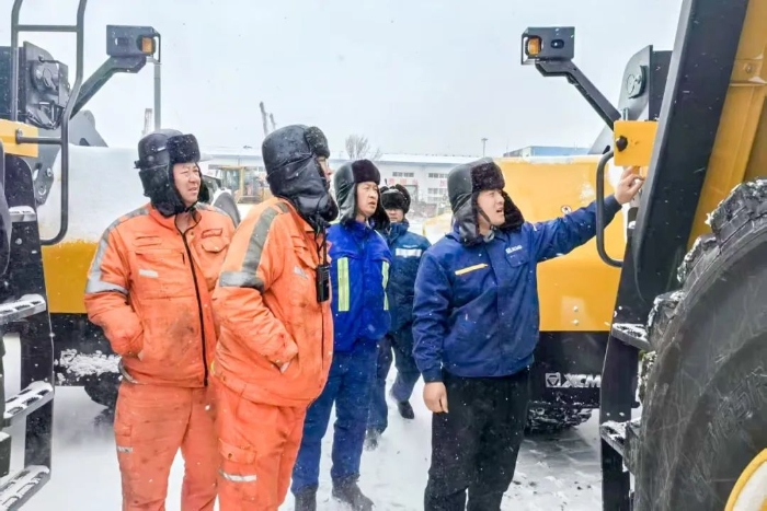 XC9108抵達(dá)港口后,徐工服務(wù)工程師冒著-10℃的嚴(yán)寒和大雪,全程跟蹤對(duì)接,進(jìn)行產(chǎn)品培訓(xùn)和操作指導(dǎo)。