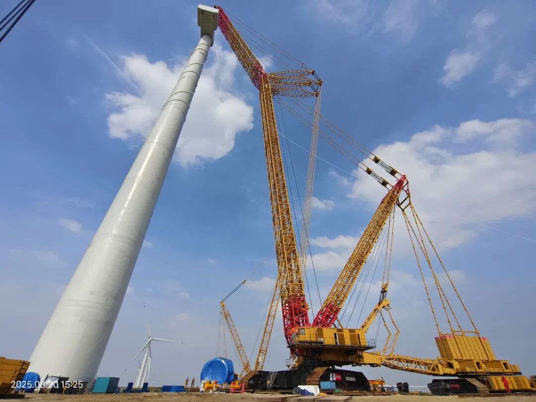 面對施工難題,項目團(tuán)隊創(chuàng)新采用樁基加固工藝增強(qiáng)地基穩(wěn)定性,啟用全球最大的4000噸級履帶式起重機(jī)——徐工XGC88000承擔(dān)吊裝任務(wù),通過“地面預(yù)調(diào)平+高空精準(zhǔn)協(xié)同”系統(tǒng)方案,最終實現(xiàn)重達(dá)千噸的機(jī)艙平穩(wěn)就位。