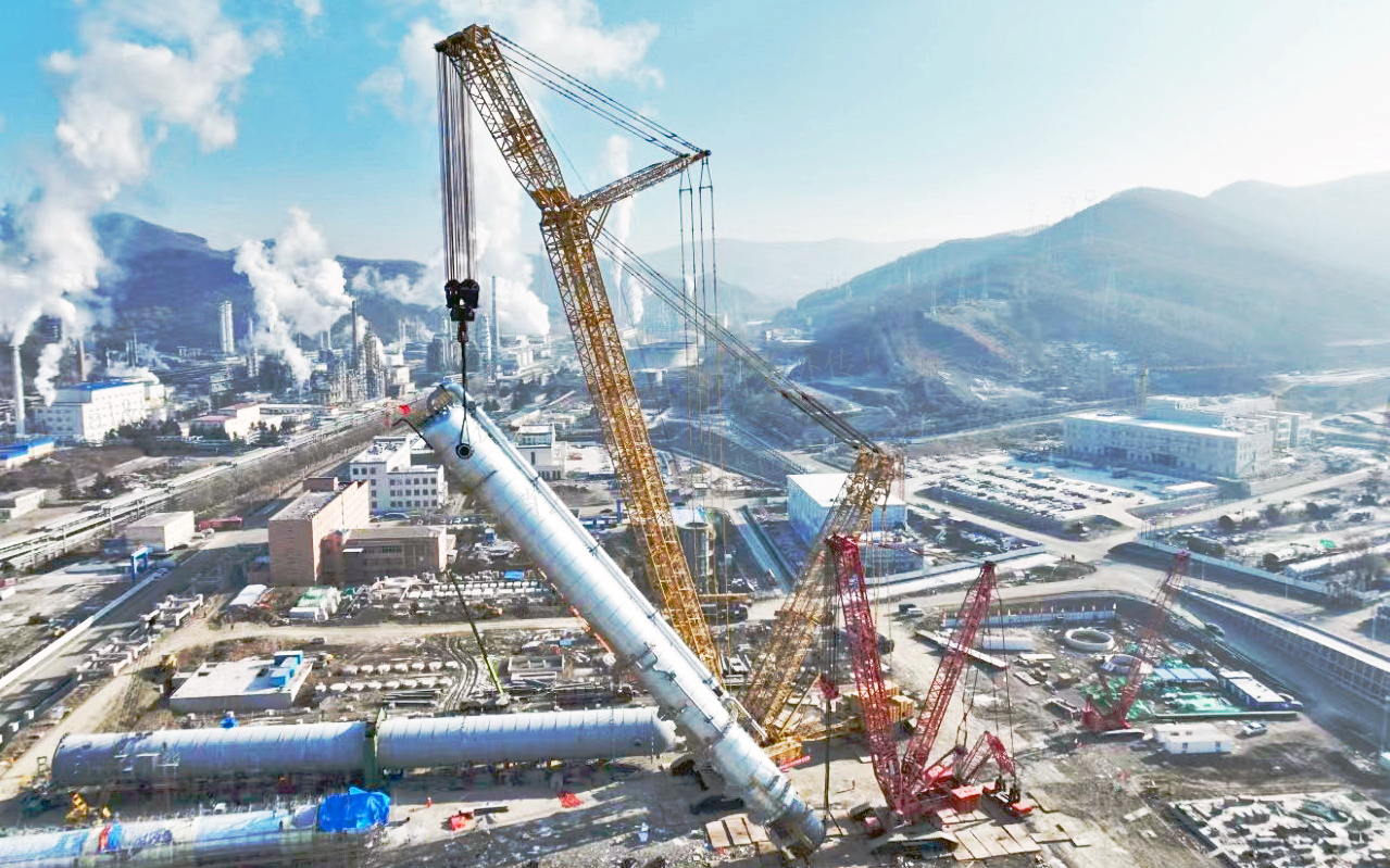 近日,徐工4000噸級履帶起重機XGC88000攜手1250噸級履帶起重機XGC17000現(xiàn)身吉林某大型石化項目現(xiàn)場,聯(lián)袂吊裝首臺大型塔器。