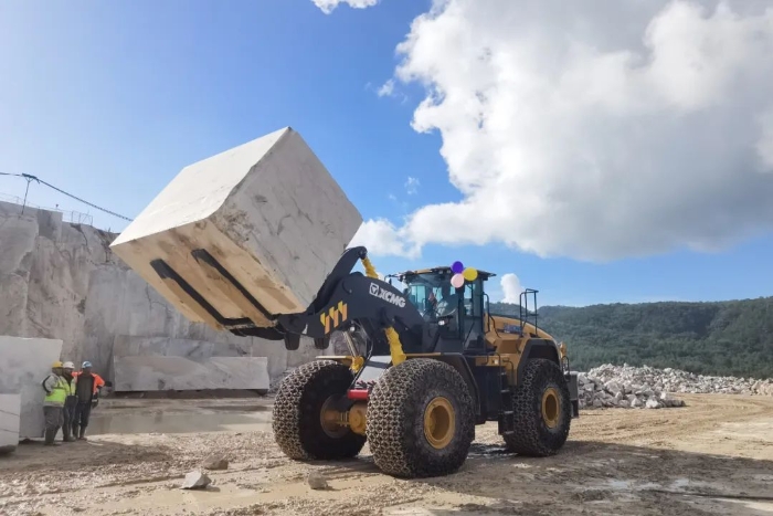 大理石開采專用裝載機交付歐洲客戶成為當(dāng)?shù)氐V區(qū)實!力!擔(dān)!當(dāng)!