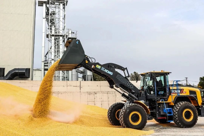 眼下,在歐洲某農(nóng)產(chǎn)品加工廠,徐工XC968-EV純電動(dòng)裝載機(jī)正迅速揮動(dòng)大臂,翻動(dòng)室外晾曬的谷物。