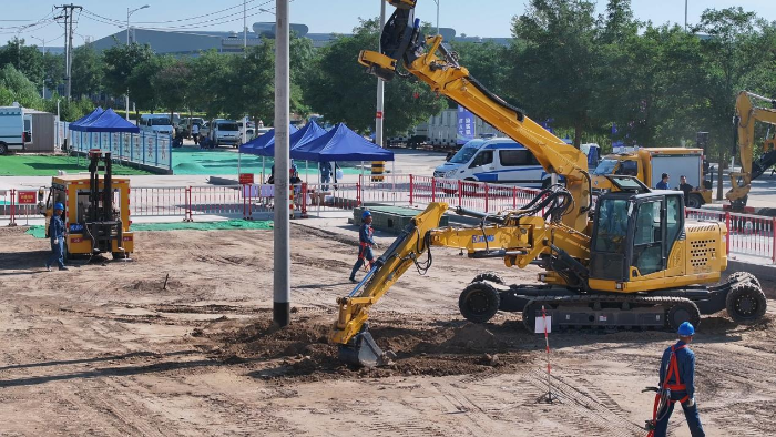 在寧夏現(xiàn)場的應(yīng)用中,徐工開挖立桿一體機(jī)的安全性和效率出色,完成一套完整工序(挖坑-放置預(yù)制件-抓桿-豎桿-回填土-夯實(shí))僅需18分鐘,比競品效率快三分之一。