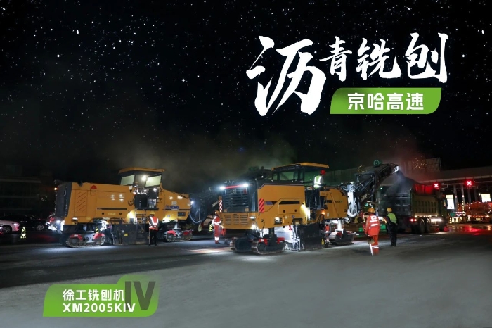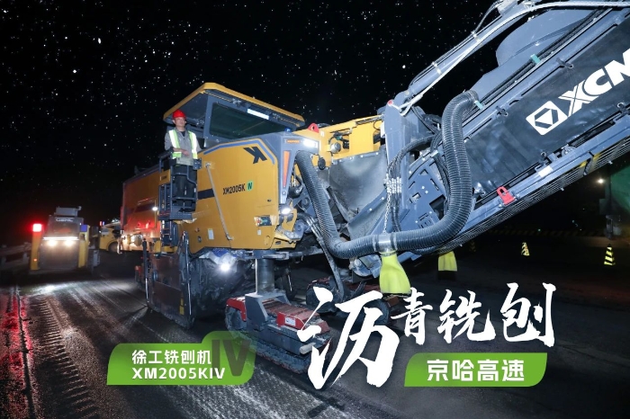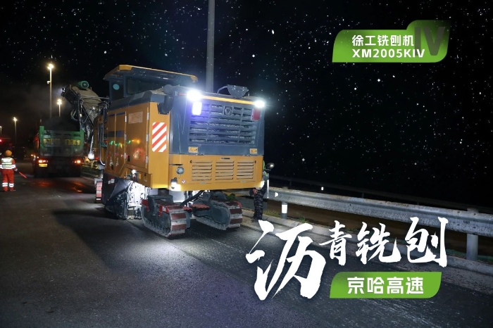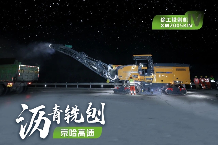 此次施工項目為京哈高速的路面改擴建工程,銑刨深度5cm,銑刨速度25m/min。由于北京地區(qū)日間車流量大,交通壓力較大,因此施工方選擇在夜間施工,日間恢復行車,盡量避免施工給交通帶來影響。由于夜間施工更加考驗施工設備的穩(wěn)定性、施工質量的可靠性,施工方選擇了兩臺徐工兩米銑刨機作為本次高速公路養(yǎng)護工程的銑刨設備,分別為XM2005KIV和XM200KII,同時進行銑刨作業(yè),并肩作戰(zhàn),按下施工進度快進鍵。