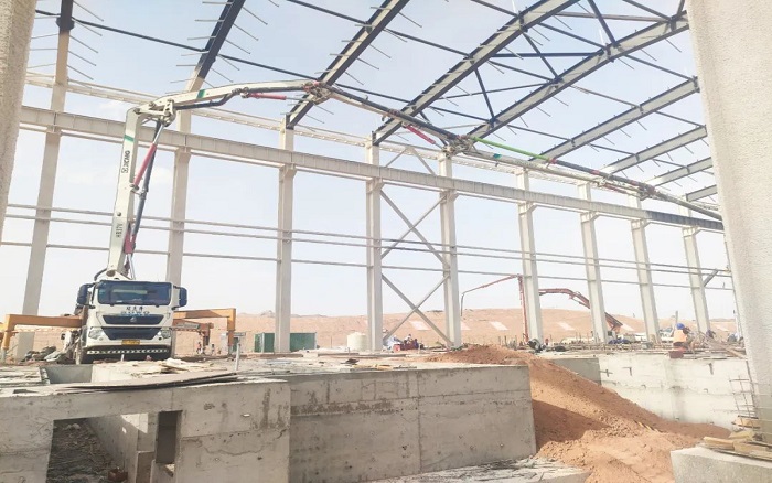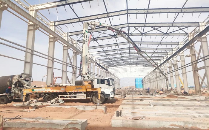 項目中后期以地面作業(yè)為主,鋼結(jié)構廠房受限于空間操作,對設備的動力和靈活提出了較高要求。最小起臂高度僅7.8米的徐工HB37V,靈活的通過性和操控性讓施工作業(yè)提質(zhì)增速,為項目施工破解難題。