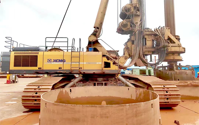 在深水基礎(chǔ)施工中,徐工采用創(chuàng)新的鋼護(hù)筒加超大旋挖鉆施工方法,確保一次性成孔,大大提升了施工效率。