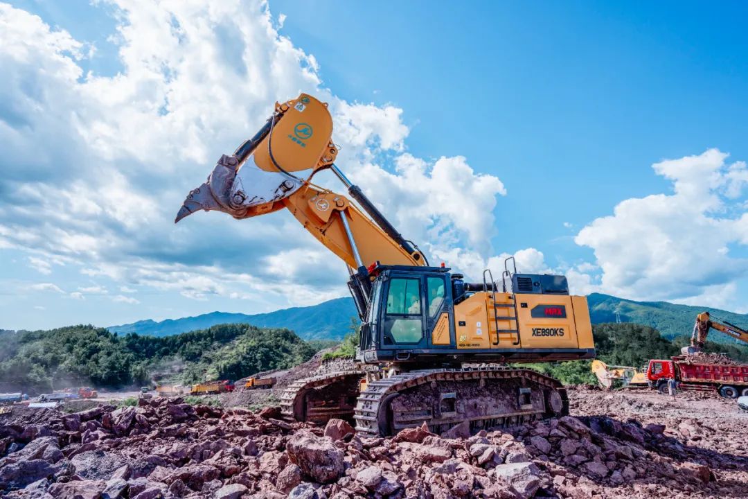 而另一款吸睛產(chǎn)品——徐工XE890KS巖石臂,專為非爆破開挖設(shè)計(jì),配備百噸級(jí)動(dòng)力,瞬時(shí)爆發(fā)力強(qiáng),挖掘力更大,重載作業(yè)更有勁。針對(duì)履帶底盤、配重、使用能效水平等方面進(jìn)行全方位提升,配備專屬作業(yè)機(jī)具“鷹鉤臂”,在非爆破礦山、地基開挖等作業(yè)場景中有著得天獨(dú)厚的優(yōu)勢。