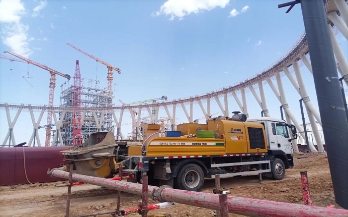 項(xiàng)目亮點(diǎn)之一的間冷塔,采用了創(chuàng)新的鋼管混凝土X柱結(jié)構(gòu),單柱高達(dá)30米,重達(dá)51.9噸。然而,隨著泵送高度的攀升,混凝土黏度急劇增加,泵送過(guò)程中極易出現(xiàn)憋壓熄火現(xiàn)象,對(duì)施工設(shè)備提出了前所未有的要求。