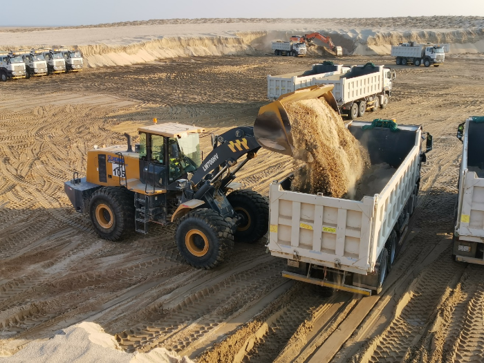 亞洲某國,新建大型公園建設(shè)現(xiàn)場,徐工LW700HV與ZL50GN相互配合高效進(jìn)行著土方作業(yè)。2020年,客戶開始采購徐工設(shè)備,對ZL50的作業(yè)性能與可靠性非常滿意,隨著業(yè)務(wù)量的不斷增加,客戶開始考慮大噸位產(chǎn)品。經(jīng)過當(dāng)?shù)匦旃やN售的全力推薦,客戶加購了徐工LW700HV裝載機(jī),該產(chǎn)品也已優(yōu)異表現(xiàn)贏得客戶的贊賞。配合自卸車,對密度約1.8t/m3的沙土進(jìn)行轉(zhuǎn)運(yùn)作業(yè),徐工LW700HV搭配4.5m3鏟斗作業(yè)起來效率驚人。