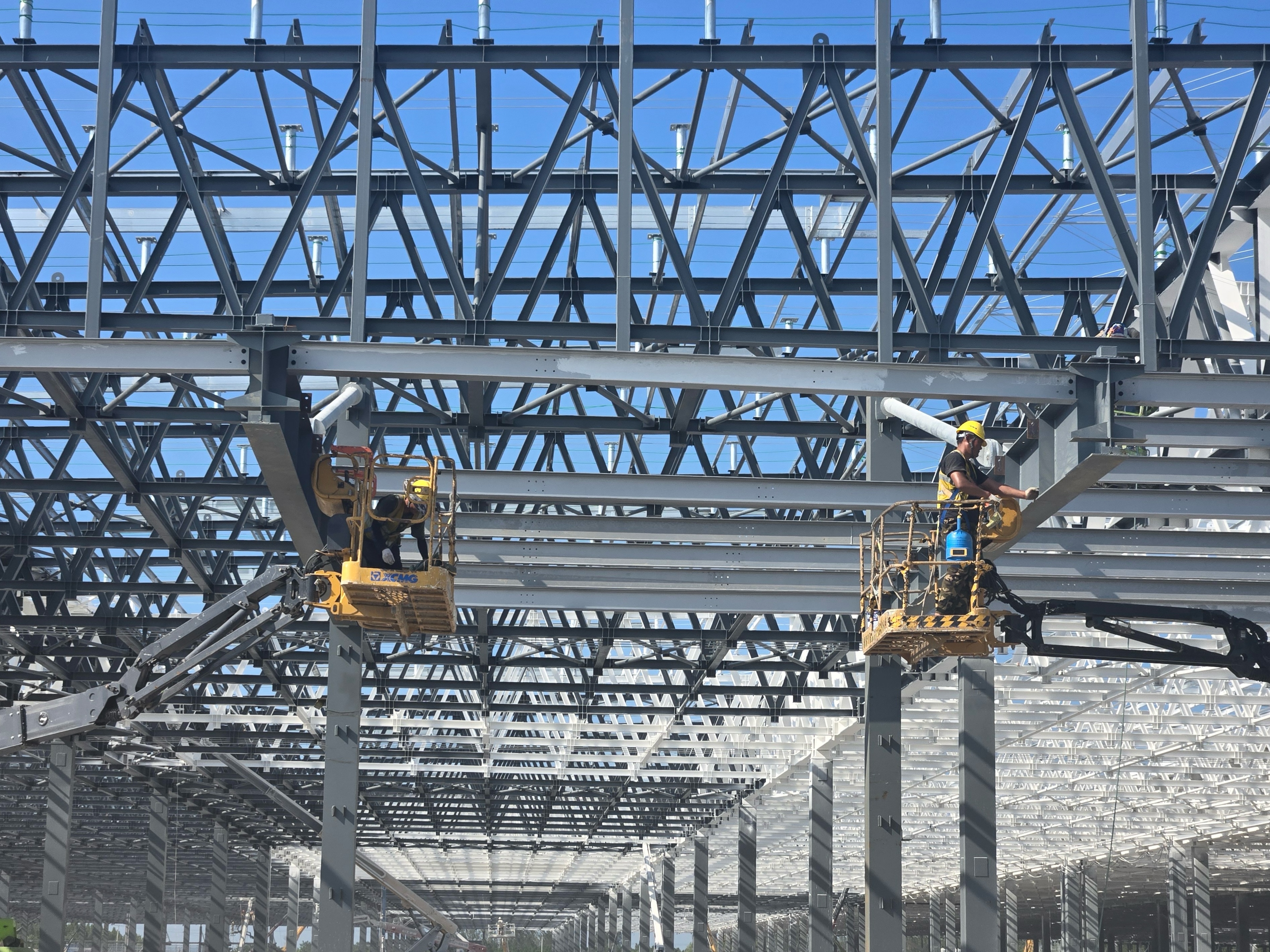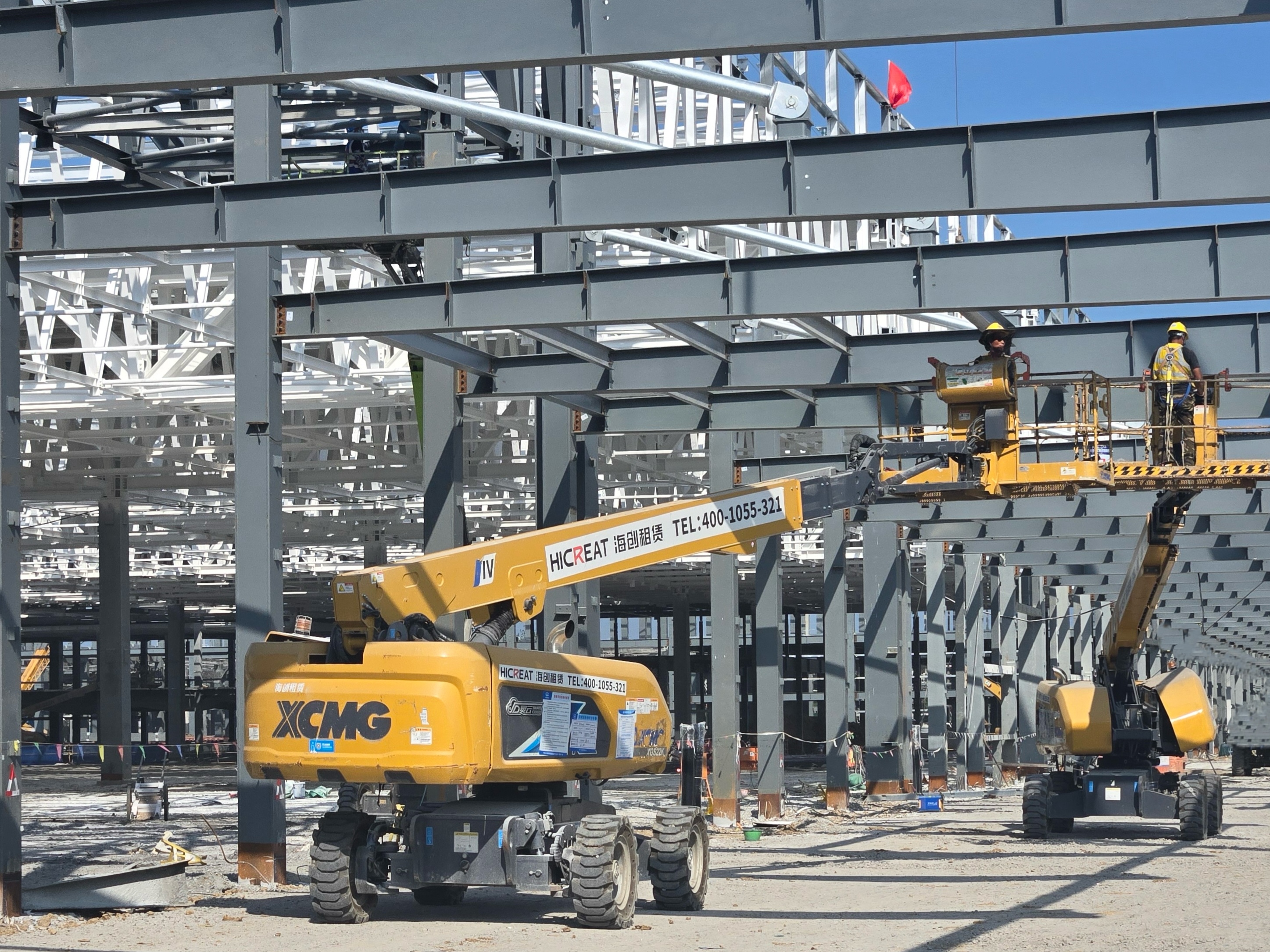 在施工現(xiàn)場,多臺徐工高空作業(yè)平臺同時作業(yè)。XGS28K 伸展長臂,將施工人員和工具平穩(wěn)送至指定高度,其快速的升降和回轉(zhuǎn)動作大大縮短了單個作業(yè)點位的施工時間。XGS34K 則在大面積高空作業(yè)區(qū)域展現(xiàn)出高效率,大范圍的作業(yè)覆蓋能力減少了設(shè)備頻繁移位的時間損耗。XGS22K 于狹窄區(qū)域靈活補位,確保施工進程無死角推進。它們相互配合,使蔚來汽車三期項目的高空施工環(huán)節(jié)如行云流水般順暢,有效提升了整體施工效率,大幅縮短了項目工期。
