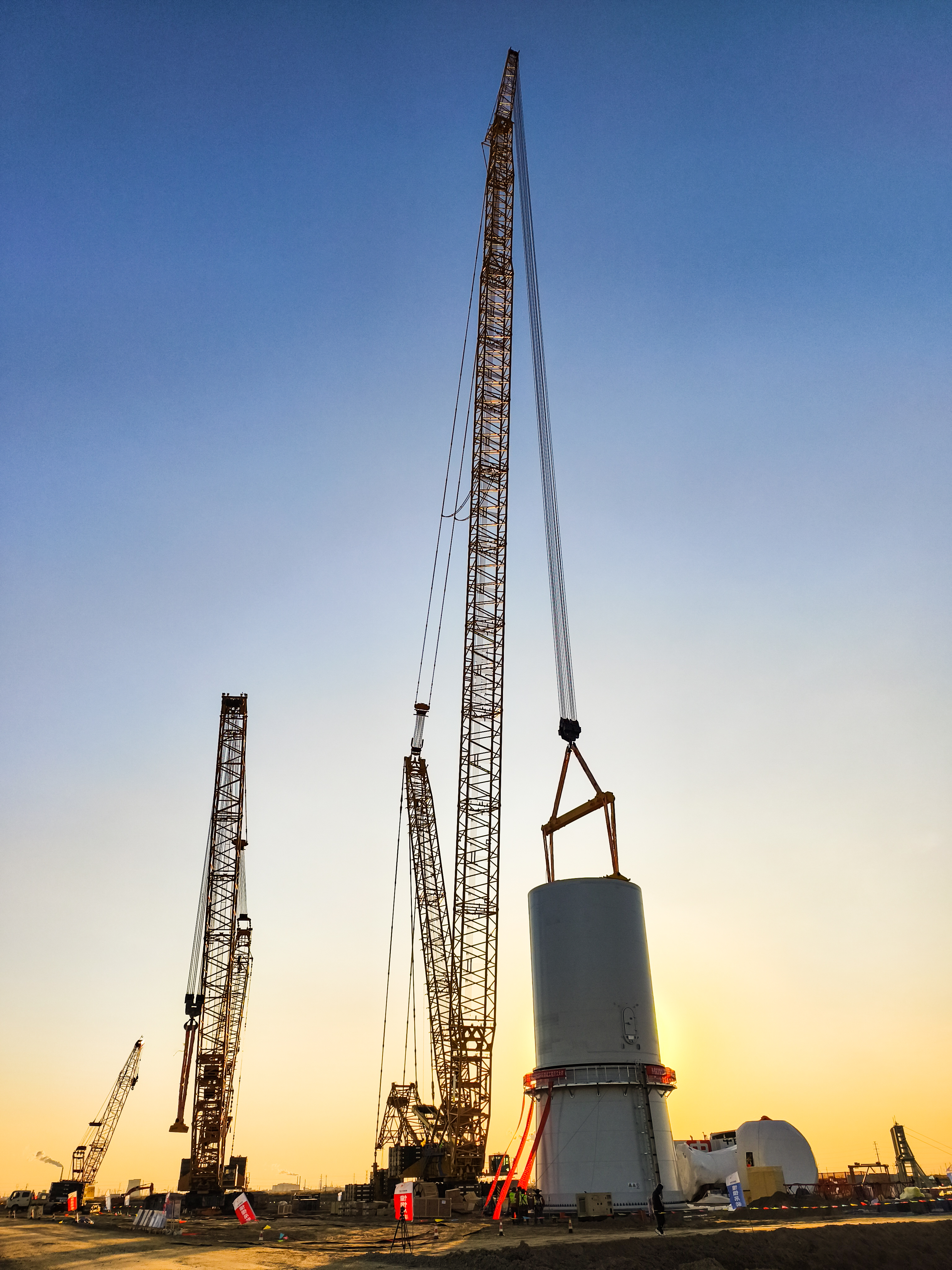 近日,徐工XLC18000(1350噸級(jí))履帶起重機(jī),亮相我國(guó)北部某風(fēng)電裝備測(cè)試認(rèn)證創(chuàng)新基地,順利完成全球最大單機(jī)容量20MW漂浮式海上風(fēng)電機(jī)組試驗(yàn)機(jī)“啟航號(hào)”的吊裝任務(wù)。