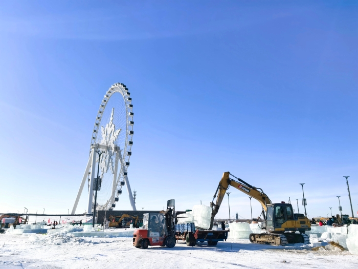 本屆哈爾濱冰雪大世界以“冰雪同夢 亞洲同心”為主題,園區(qū)設計和建設充分融入2025年第九屆亞冬會元素,打造一座更加氣勢恢宏、美輪美奐的冰雪主題樂園。在這個以冰雪鑄造的王國中,徐工中小型挖掘機負責運輸冰塊的重要工作,展現(xiàn)了它們力大無窮的一面。