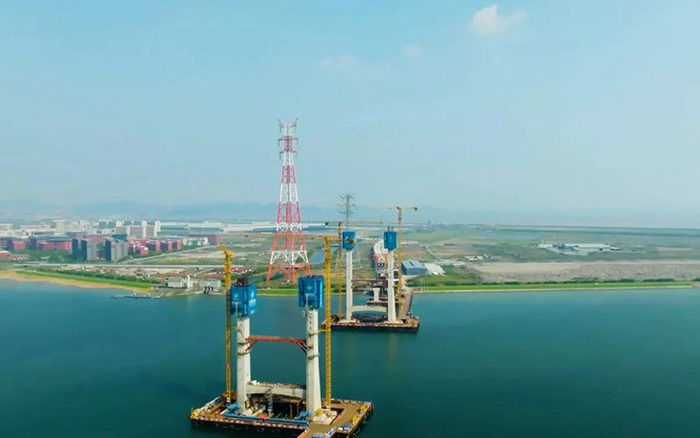 該項目建設規(guī)模大,結(jié)構(gòu)類型多,科技含量高。全線海域橋梁長度約9公里,海上作業(yè)工程量大,項目施工區(qū)域內(nèi)氣象、水文、地質(zhì)條件復雜,同時還面臨航運繁忙,海上施工組織難度大等挑戰(zhàn)。