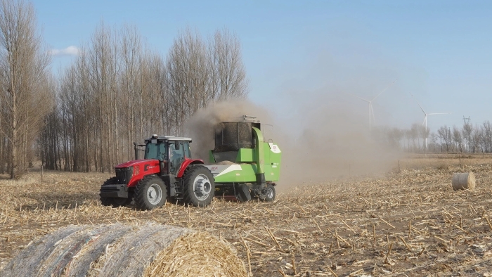 在內(nèi)蒙古,徐工XT2004拖拉機(jī)牽引著大型圓捆打捆機(jī)穩(wěn)步前行。轟鳴聲中,散落的秸稈被高效歸整,發(fā)動(dòng)機(jī)的穩(wěn)定節(jié)拍與草原春風(fēng)合奏出春耕序曲。