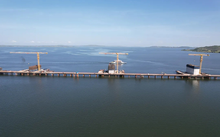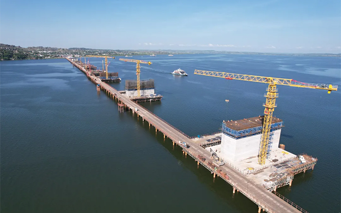 此次徐工塔機參建的馬古富力大橋項目位于非洲第一大湖——維多利亞湖,大橋建成后將會成為東非第一長橋,也是非洲最長的矮塔斜拉橋。