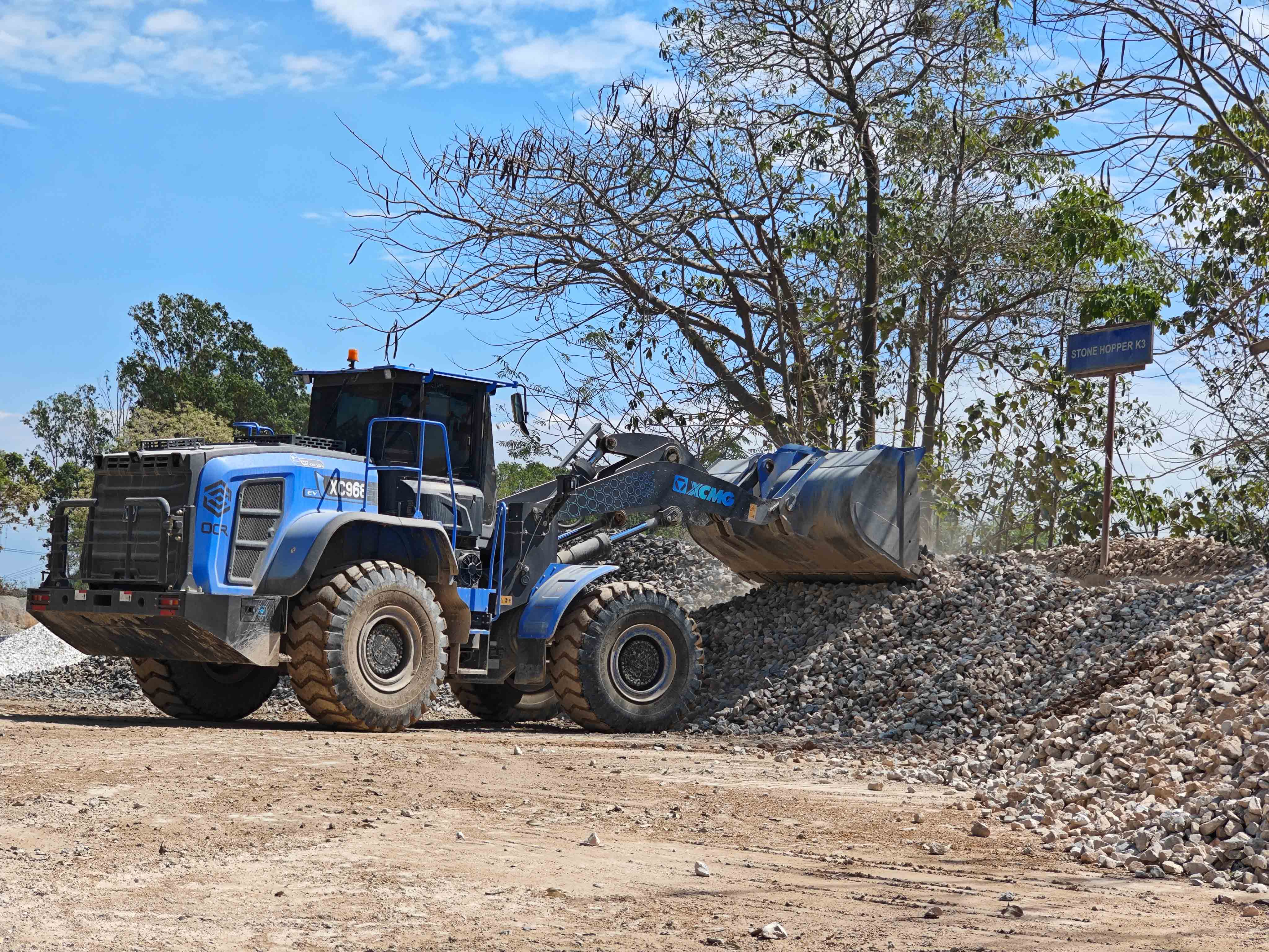 礦山生產(chǎn),作業(yè)時(shí)間長(zhǎng),物料堅(jiān)硬密度高,道路崎嶇,工況較為險(xiǎn)重。徐工XC968-EV純電動(dòng)裝載機(jī)的新能源優(yōu)勢(shì),在礦道端的鏟裝作業(yè)優(yōu)勢(shì)非常明顯,相對(duì)密閉空間內(nèi),零排放、低噪音對(duì)工段一起作業(yè)的戶外工作人員的健康非常友好。