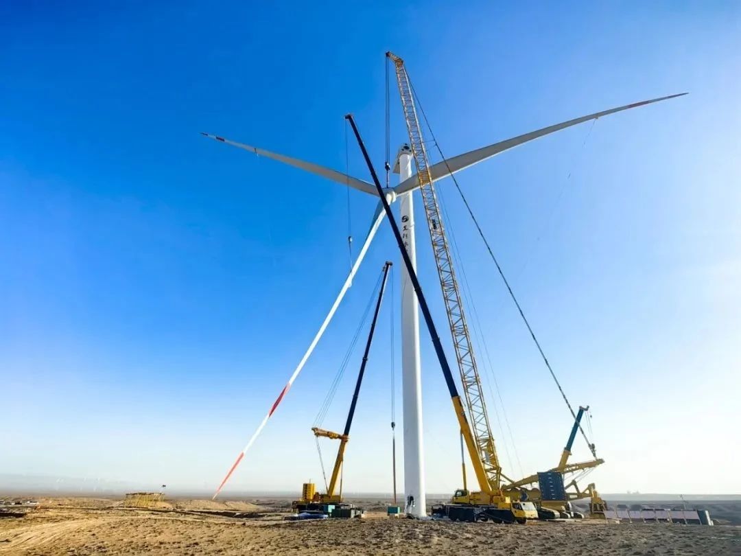 西北戈壁10萬千瓦風電項目現(xiàn)場,徐工輪履產(chǎn)品集聚,上演著多機協(xié)同的吊裝攻堅戰(zhàn)。