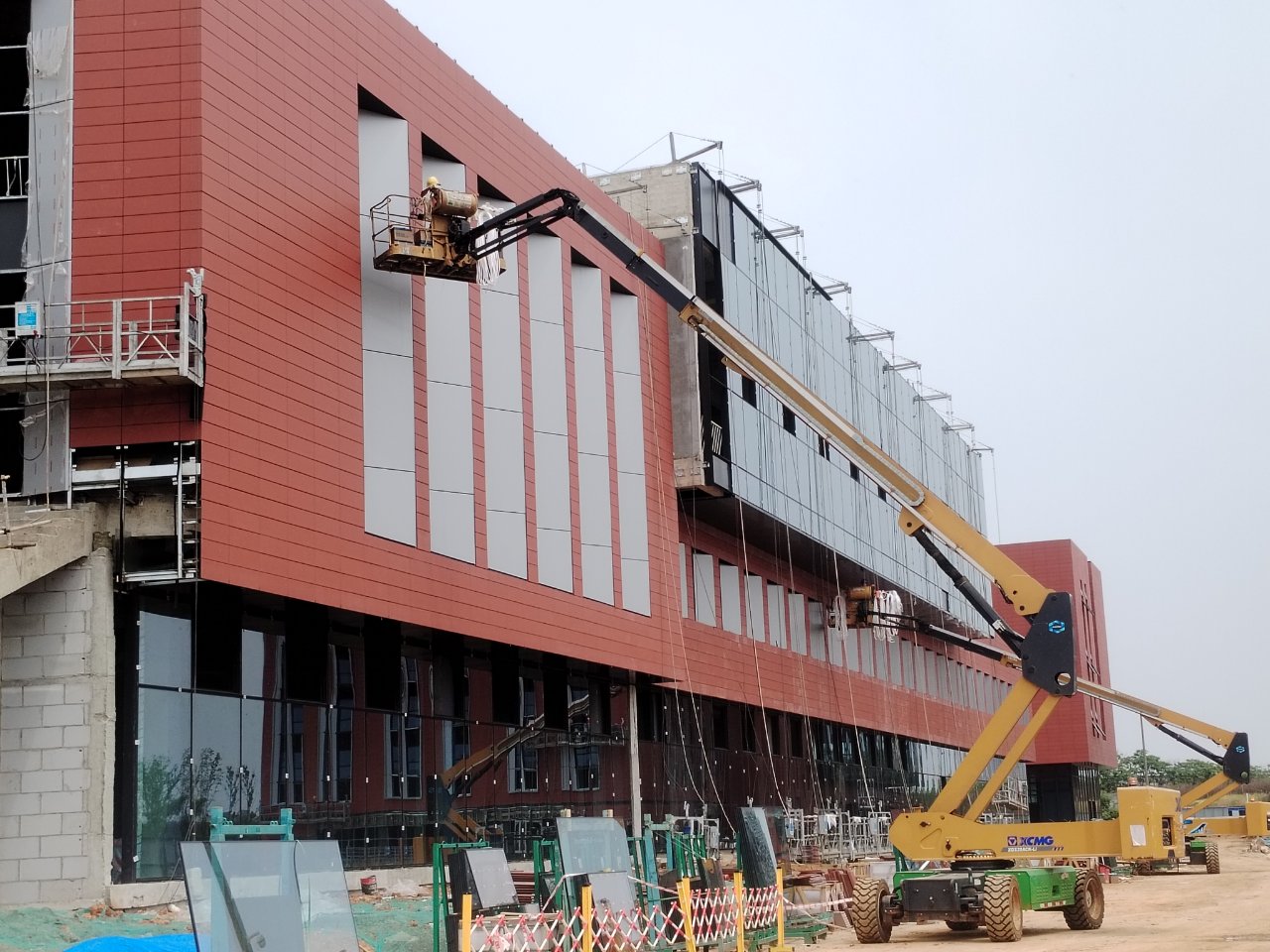 在武漢經(jīng)開區(qū)中國(guó)電子云研發(fā)基地一期項(xiàng)目中,徐工2臺(tái)XGS28ACK-Li電動(dòng)直臂式高空作業(yè)平臺(tái)以“零排放、高精度、智能化”的核心優(yōu)勢(shì),為數(shù)據(jù)中心鋼結(jié)構(gòu)安裝及外立面部署提供了高效解決方案。該項(xiàng)目作為國(guó)內(nèi)信創(chuàng)云領(lǐng)域的標(biāo)志性工程,總建筑面積達(dá)30萬(wàn)平方米,聚焦人工智能、云平臺(tái)等前沿技術(shù),對(duì)施工環(huán)境潔凈度、能源效率及安全管理提出嚴(yán)苛要求。