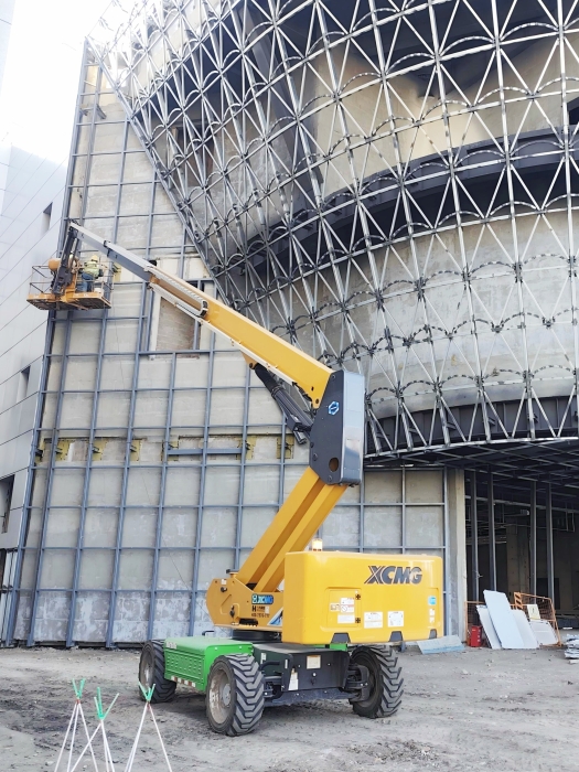 XGS28ACK-Li可實(shí)現(xiàn)超大作業(yè)空間覆蓋,460kg雙載荷設(shè)計(jì)高效承載兩名工人及焊接設(shè)備,結(jié)合5mm/s微動(dòng)調(diào)節(jié)能力,在商場弧形外立面狹窄區(qū)域?qū)崿F(xiàn)毫米級運(yùn)行,保障工人精準(zhǔn)平穩(wěn)操作焊縫定位。整機(jī)尺寸較小,搭載電控四輪轉(zhuǎn)向與越野輪胎,在鋼構(gòu)件密集的場地實(shí)現(xiàn)靈活轉(zhuǎn)場,360°連續(xù)回轉(zhuǎn),作業(yè)更方便。